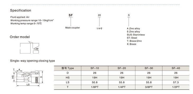 SF Quick Coupler (pneumatic fitting)