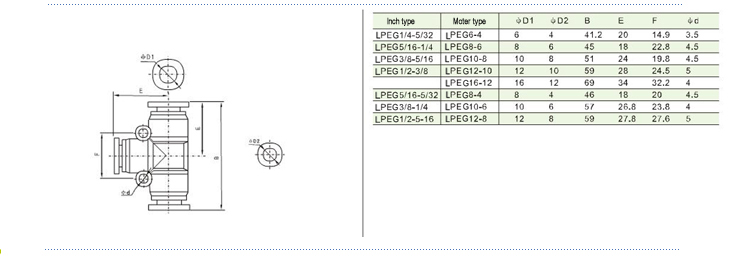 LPW Y Tee reducer pneumatic fitting