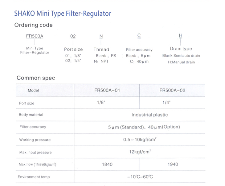 SHAKO Mini Type Filter-Regulator