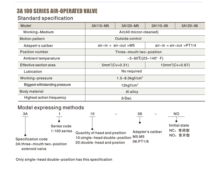 3A 100 Series Air-Operated Value
